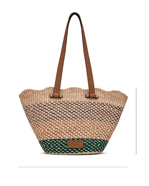 A large shoulder tote with a playful scalloped edge that’s recognisably AAKS, this trapezoid silhouette is craft in it's purest form, with handwoven raffia fibres. The subtle Music Bar detail is a quiet nod to Strathberry’s signature. Spacious enough to hold all your summer essentials, it’s a joyful companion for sunlit adventures.